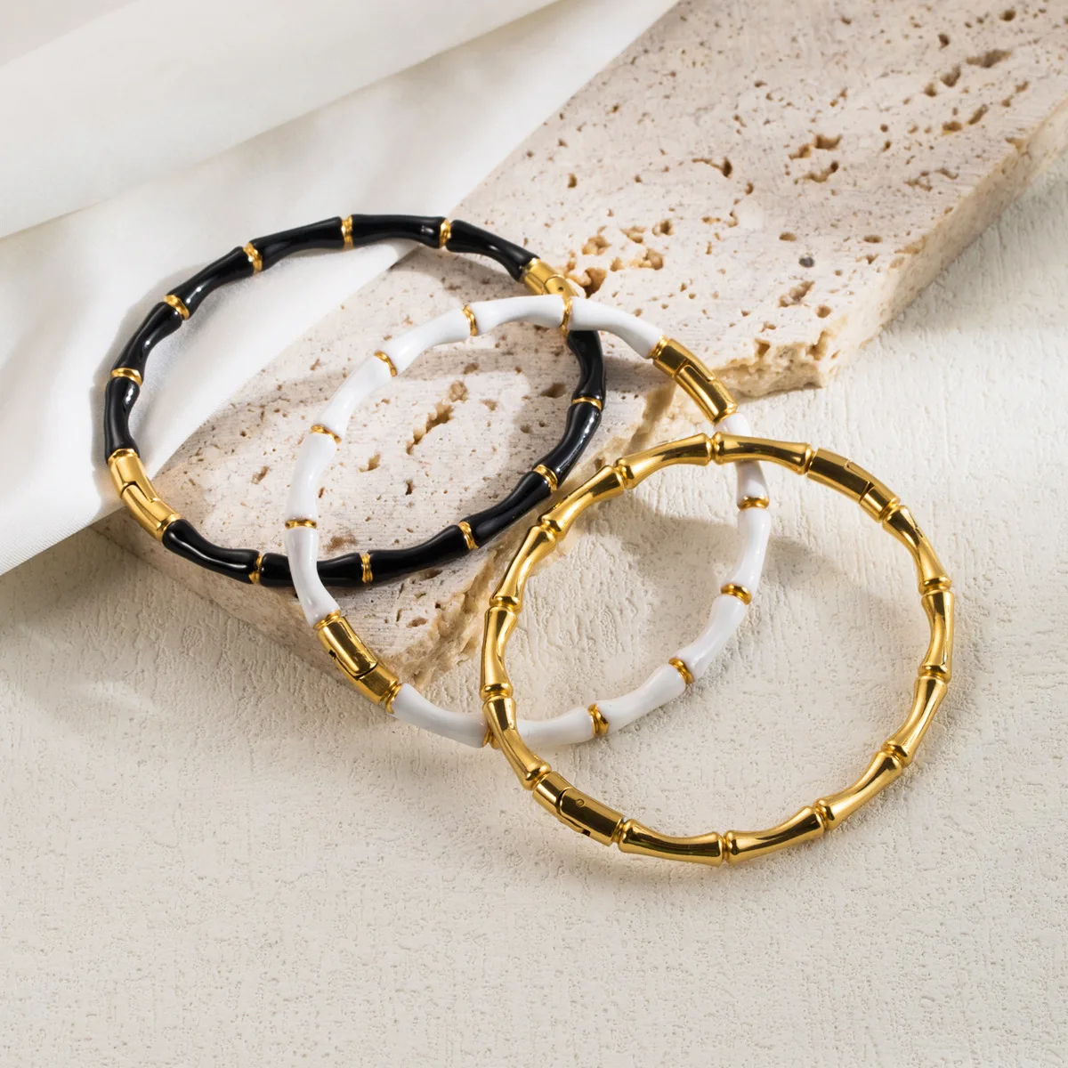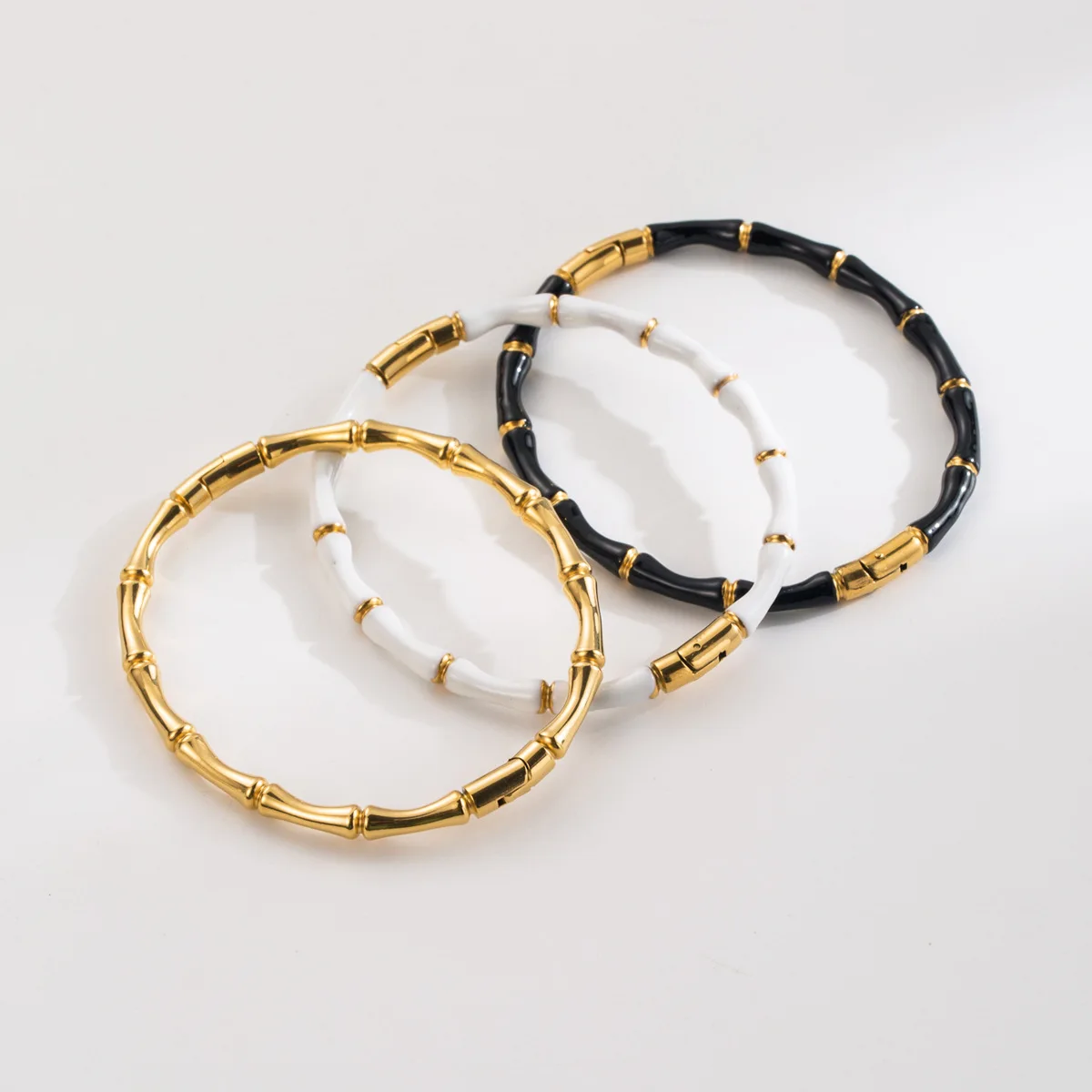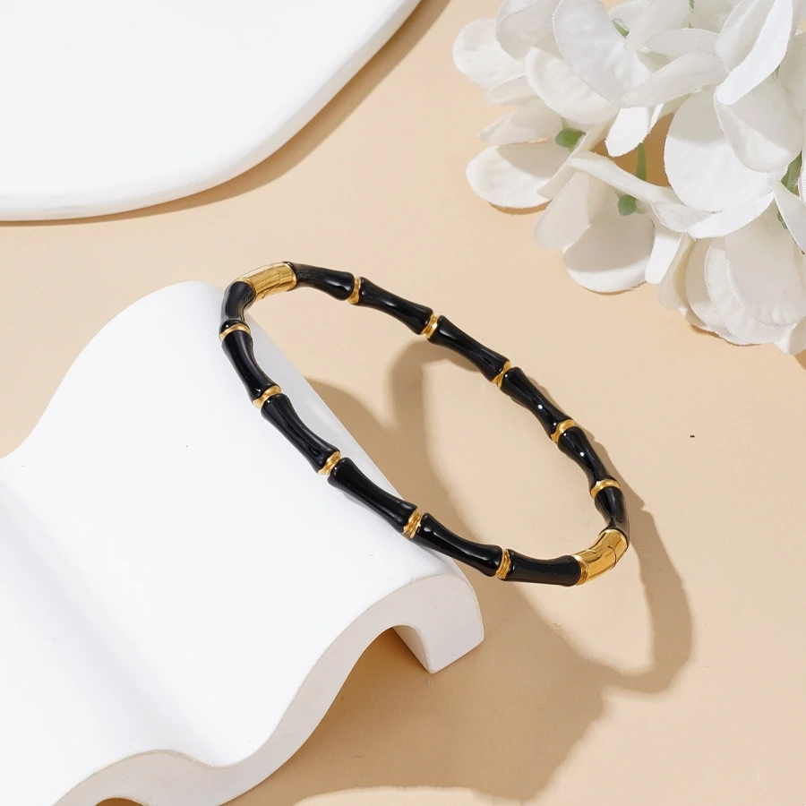 MONl Black And White Bamboo Bone Bracelet For Women 18k Gold